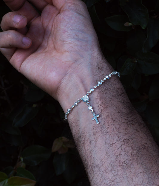 Pulseira Terço com zircônias - Prata 925