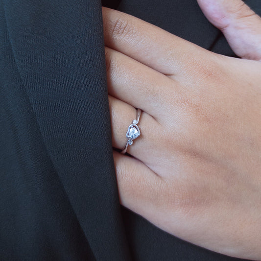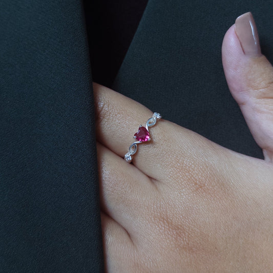 Anel Coração Cristal - Prata 925 Banhado a Ródio
