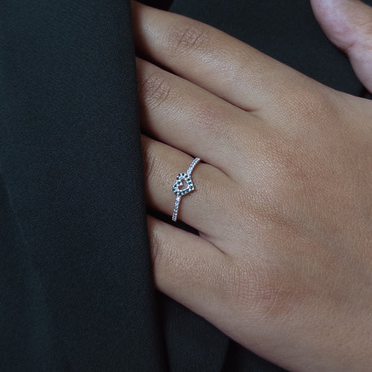 Anel Coração Vazado em Esmeraldas - Prata 925