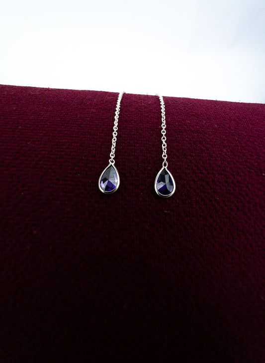 Brinco de Prata 925 Gota Ametista - 6 cm