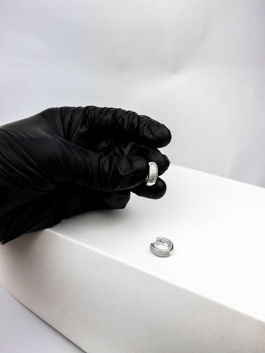 Brinco ICE Argola de Prata 925 3 Fileiras - Banhado a Ródio branco