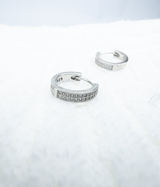Brinco ICE Argola de Prata 925 duas fileiras de zircônia - Banhado a Ródio Branco
