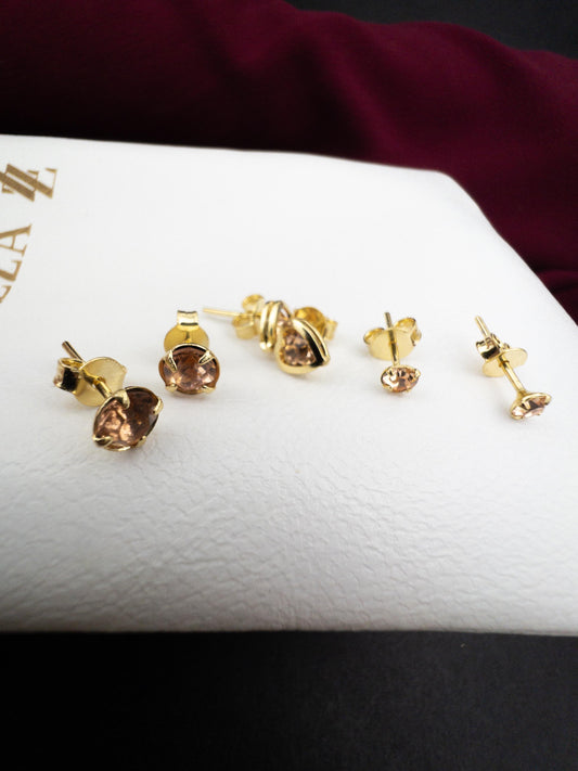 Trio de Brincos Ponto de Luz - Banhado a Ouro 18k