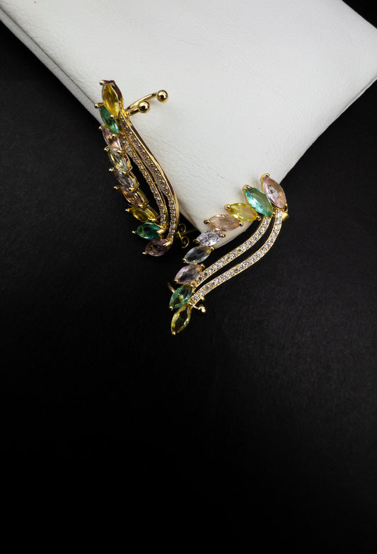 Brinco Ear Jacket Cravejado - Banhado a Ouro 18k