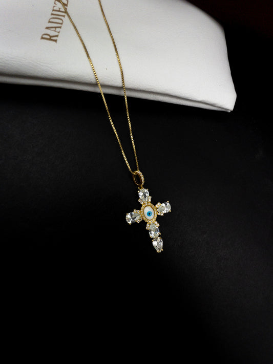 Colar Cruz Olho Grego 60cm - Banhado a Ouro 18k