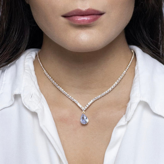 Colar Riviera De Zircônias Com Pingente Gota - Banhado a Ouro 18k