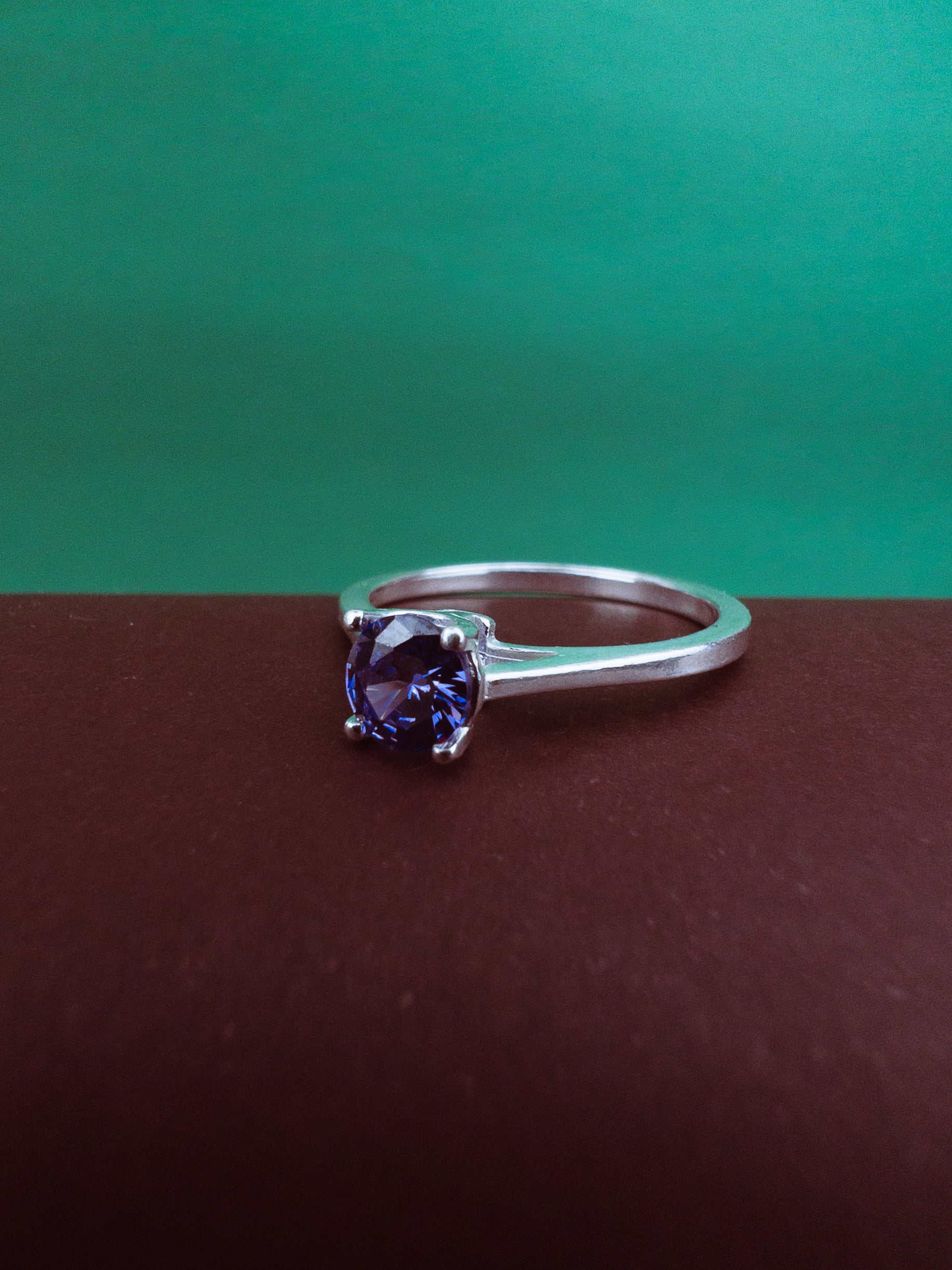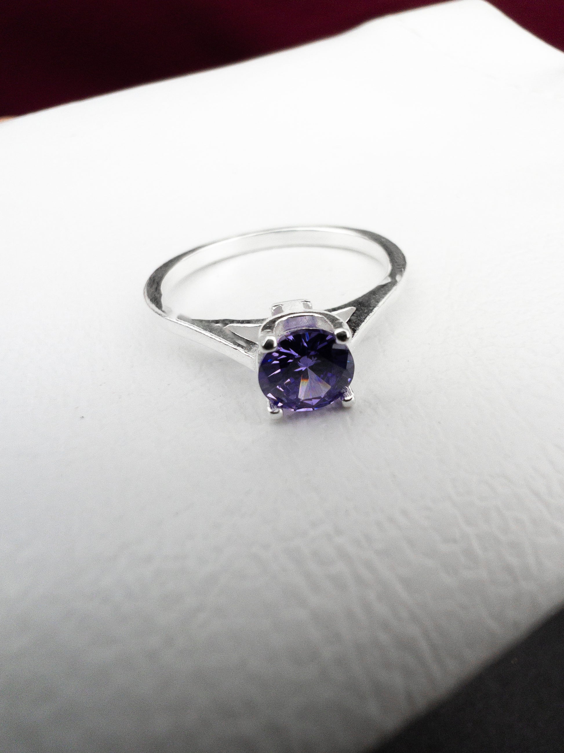 Anel Solitário Zircônia Ametista - Prata 925