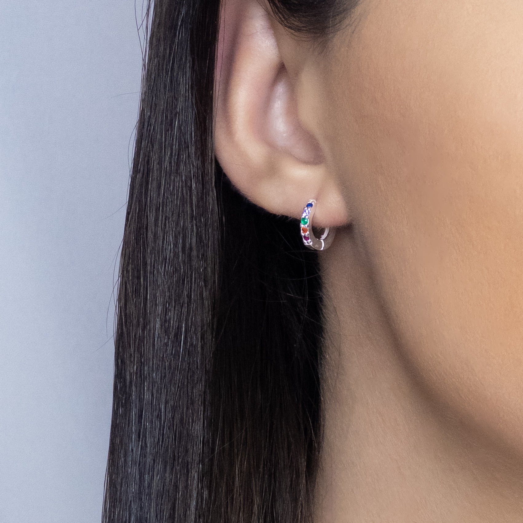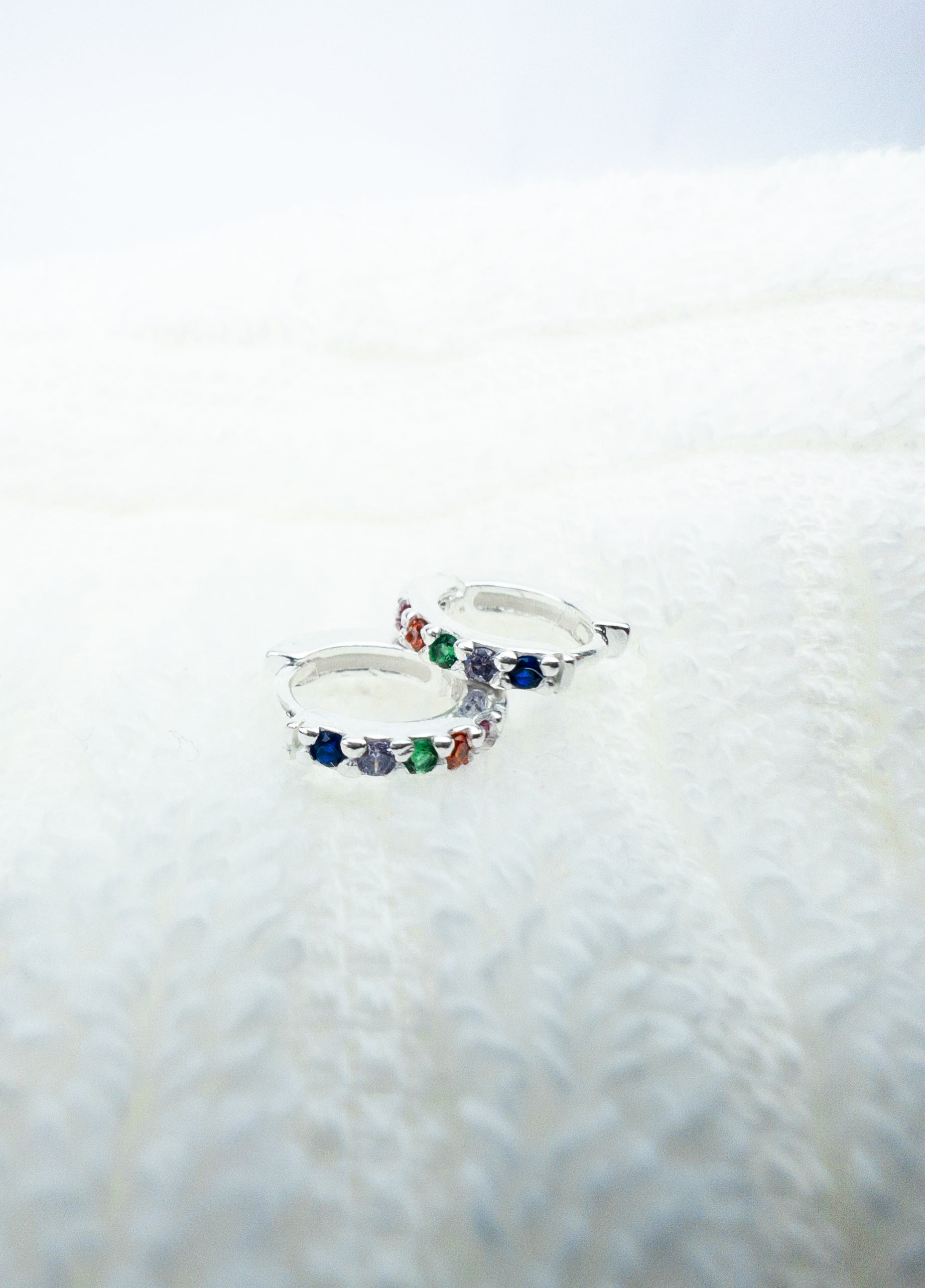 Brinco Argola de Prata - Fileira Colorida com Zircônias