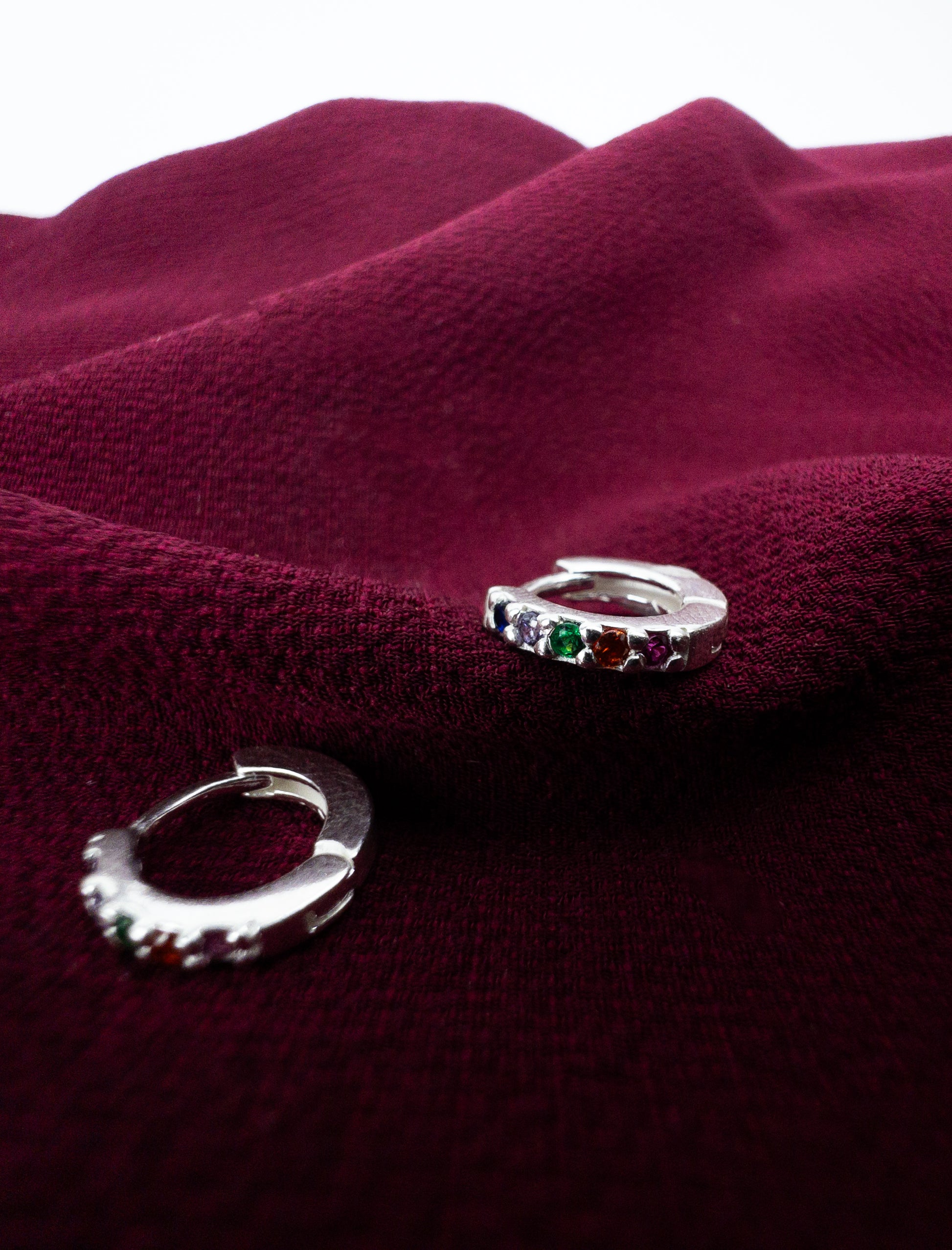 Estilo e elegância são as palavras que definem a Argola de Prata - Fileira Colorida com Zircônias. Feita em prata de alta qualidade, esta argola possui uma fileira de zircônias coloridas, trazendo um toque de brilho e charme para qualquer look. Perfeita para o dia a dia e para quem busca um destaque na orelha porém com minimalismo.