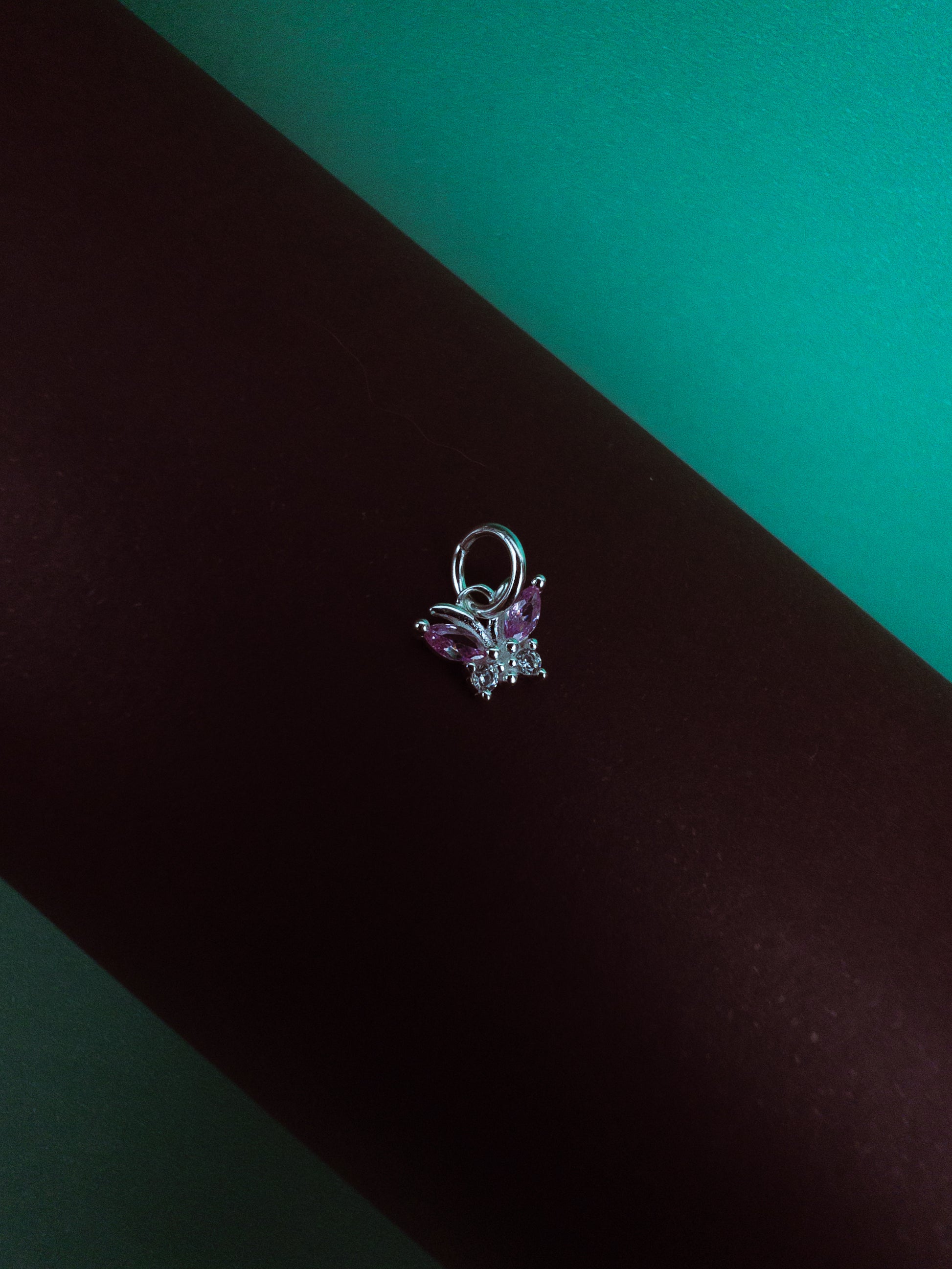 Um pingente de borboleta em prata 925 é uma delicada peça de joalheria que evoca beleza e leveza. Feito de prata genuína, o pingente exibe o contorno gracioso de uma borboleta, capturando sua forma elegante e detalhes intrincados. Sua pequena dimensão o torna sutil e discreto, perfeito para uso diário ou para adicionar um toque de charme a qualquer look. A prata 925 confere durabilidade e brilho duradouro ao pingente, enquanto o design atemporal da borboleta simboliza transformação, liberdade e renovação, tornando-o também um presente significativo.