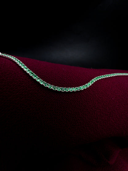 Entre na aura de elegância e luxo com a Pulseira Riviera Esmeraldas - Prata 925. Esta deslumbrante peça de joalheria é uma fusão perfeita de sofisticação e beleza natural. Cada centímetro dessa pulseira é uma celebração do requinte, destacando-se com o brilho prateado da prata 925 e o deslumbrante verde das zircônias na cor esmeralda.