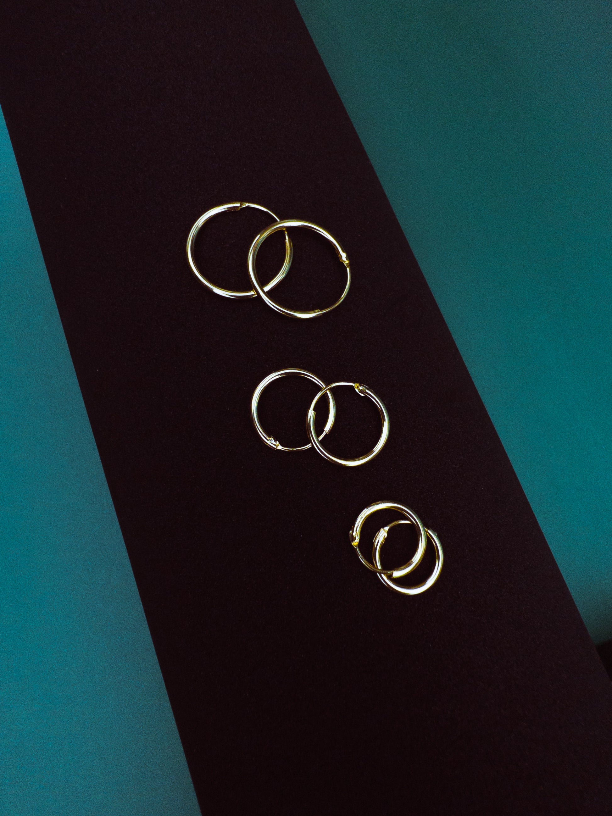 Este trio acompanha 3 pares de brincos de argola banhada a ouro 18k em 3 tamanhos diferentes.